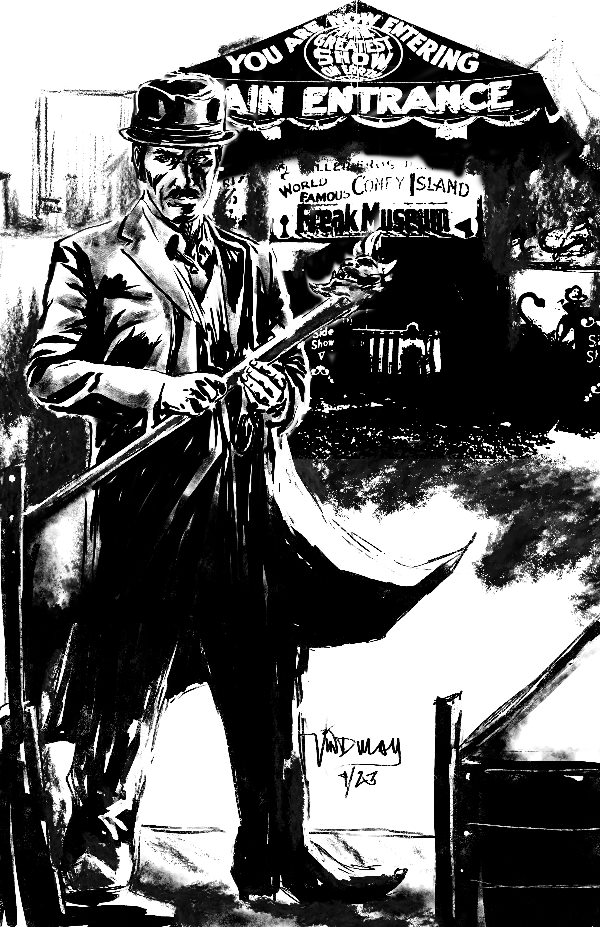As I’ve reported on earlier postings, Freak Show is a series of horror/dark fantasy stories linked by a wandering traveler called Colonel Winthrop E. Smith. The Colonel travels from one small town to the next in an old hearse that appears much longer on the inside than the outside of the vehicle.