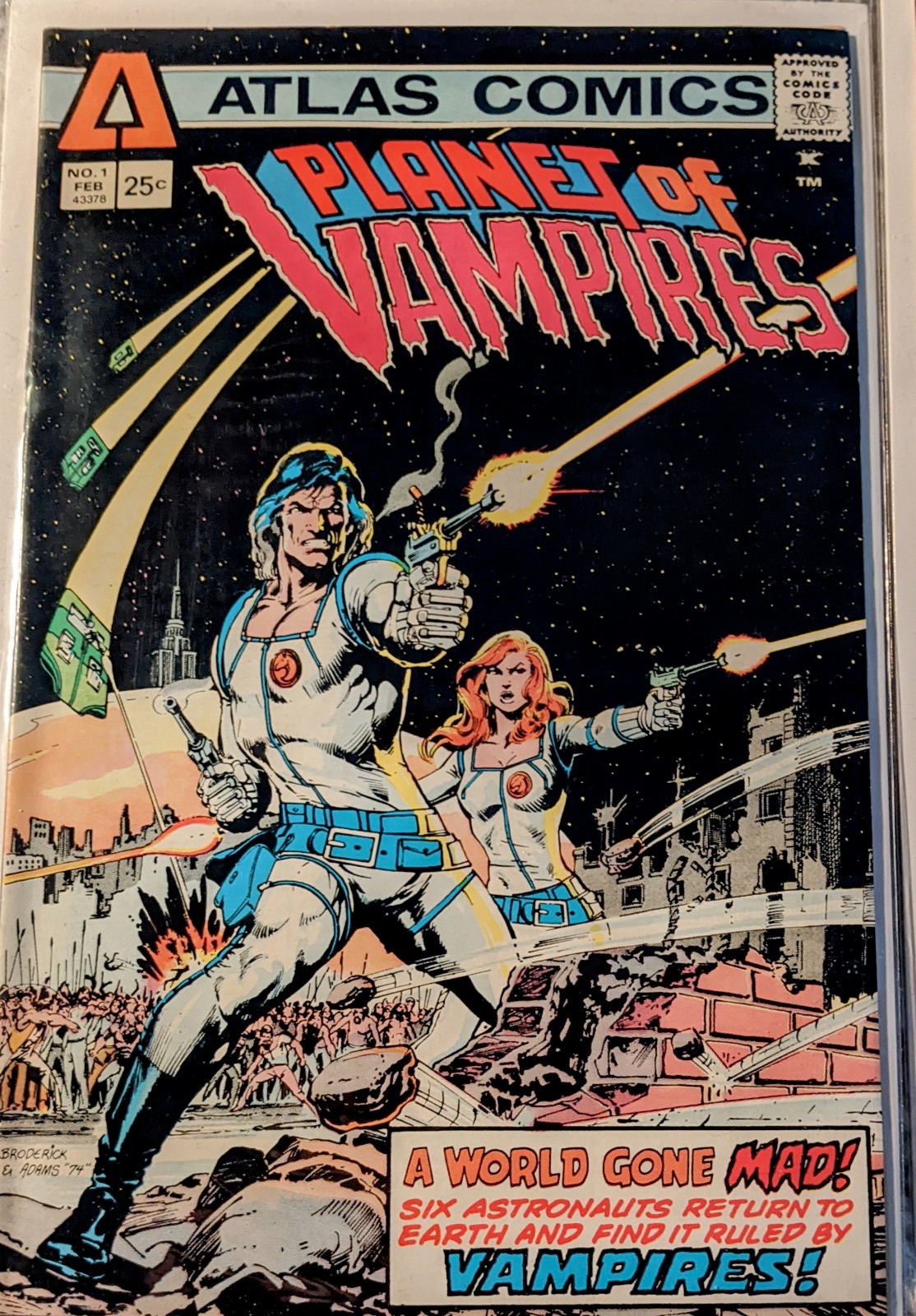 In the far-off era of 2010 AD, astronauts return from space to find Earth ruled by technological geniuses who live on human blood in Planet of Vampires. The storyline is interesting along with the cover.