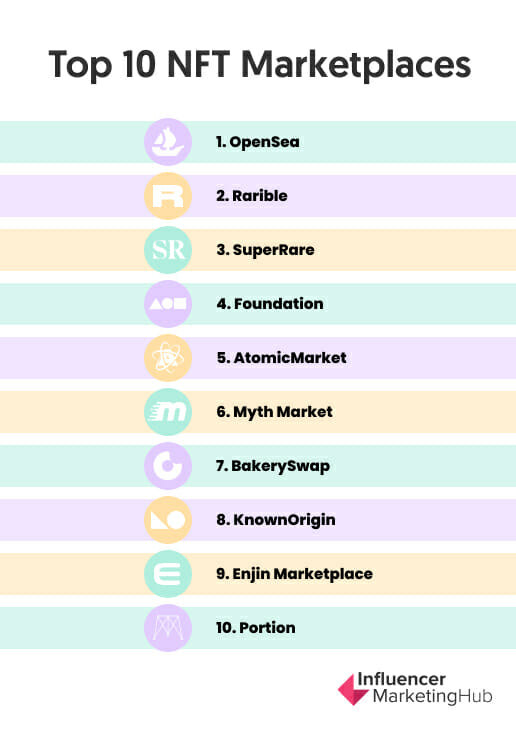 - Currently, NFTs can be create and sold on various marketplaces. (I’ve linked the following list from Influencer Marketing Hub which contains additional information).