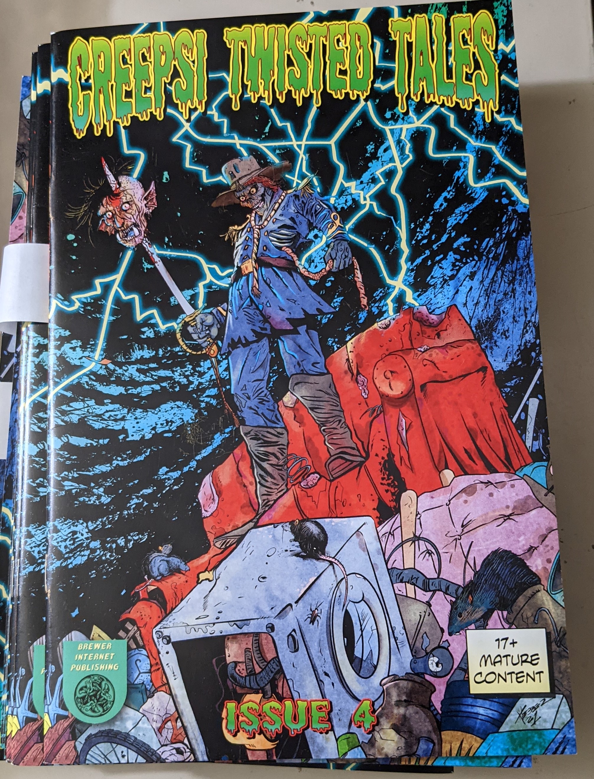 It’s been another week of new comics, new stories and continued writing. First, I have the latest issue of Creepsi Twisted Tales in from the printer. As you can see, Kleber Flores did some great work on the cover. Inside, we have the final installment of the “Circuit Rider” with artwork by Luiz Rosa while Pedro Cupert completed work on a short story I wrote called, “We Take You to a Breaking News Story”. Click on the picture to purchase this or any of our comics.