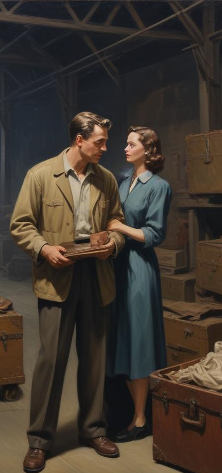 He held the tarp up for the woman, and she crawled out. The night watch’s light gave off enough ambient light over the cargo hold for them to find a path back to the hatch above. He reached over to hold the woman’s arm to guide her, but she pulled away.