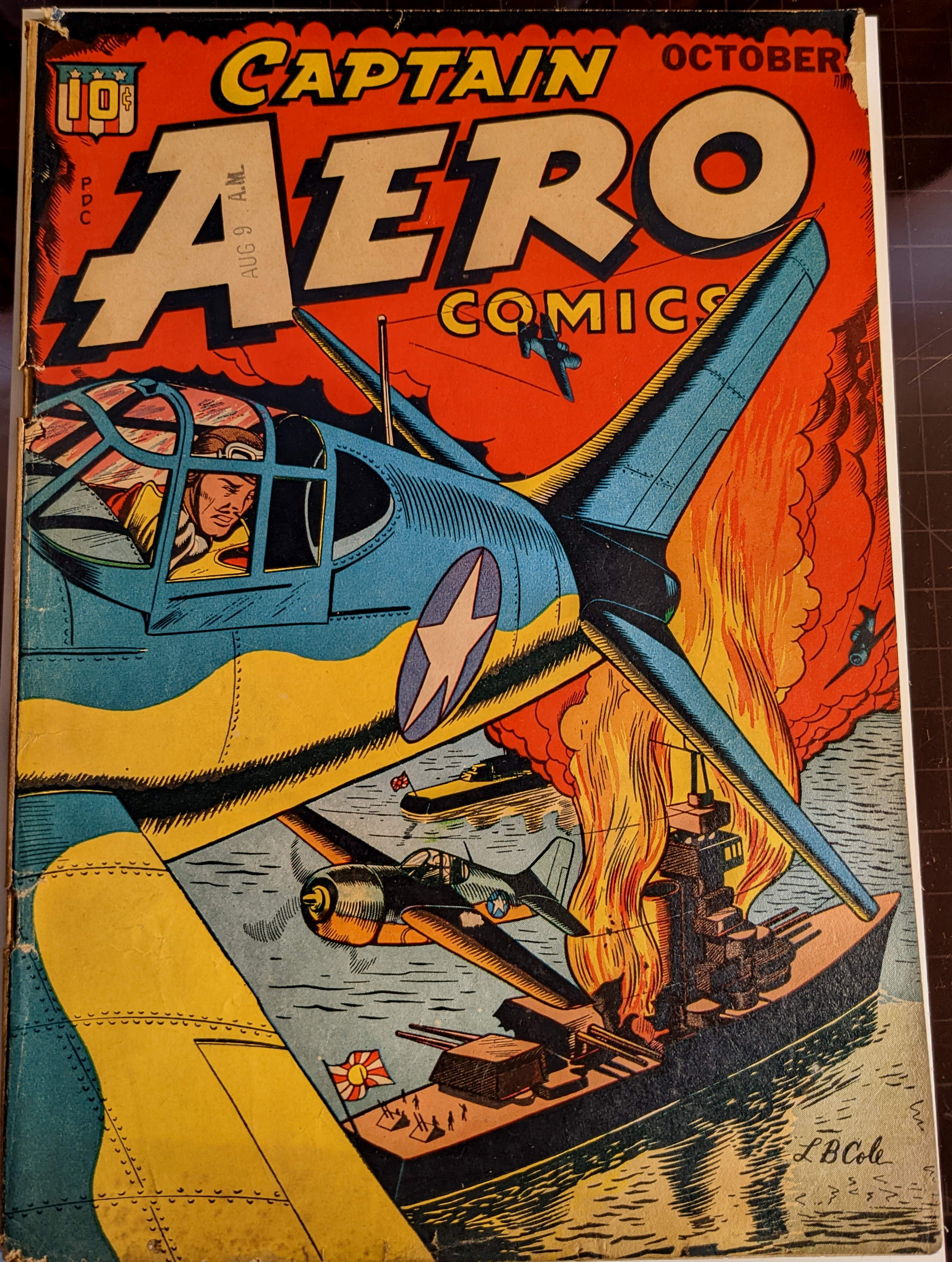 Staying with the captains, next up is Captain Aero Comics (Vol. 4 #17) is from October, 1944 with a cover by L. B. Cole.