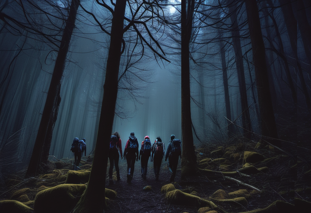 The campfire flickered in the dusk as the small party gathered around it tried to make sense of their day. An acute uneasiness filled the air while one man smoked a cigar watching the two women sitting between two other men. The glow from the fire revealed glances of concern as they nibbled on high-energy bars from the emergency backpack. A splashing murmur from a nearby creek sounded over the snips and cracks of the campfire.