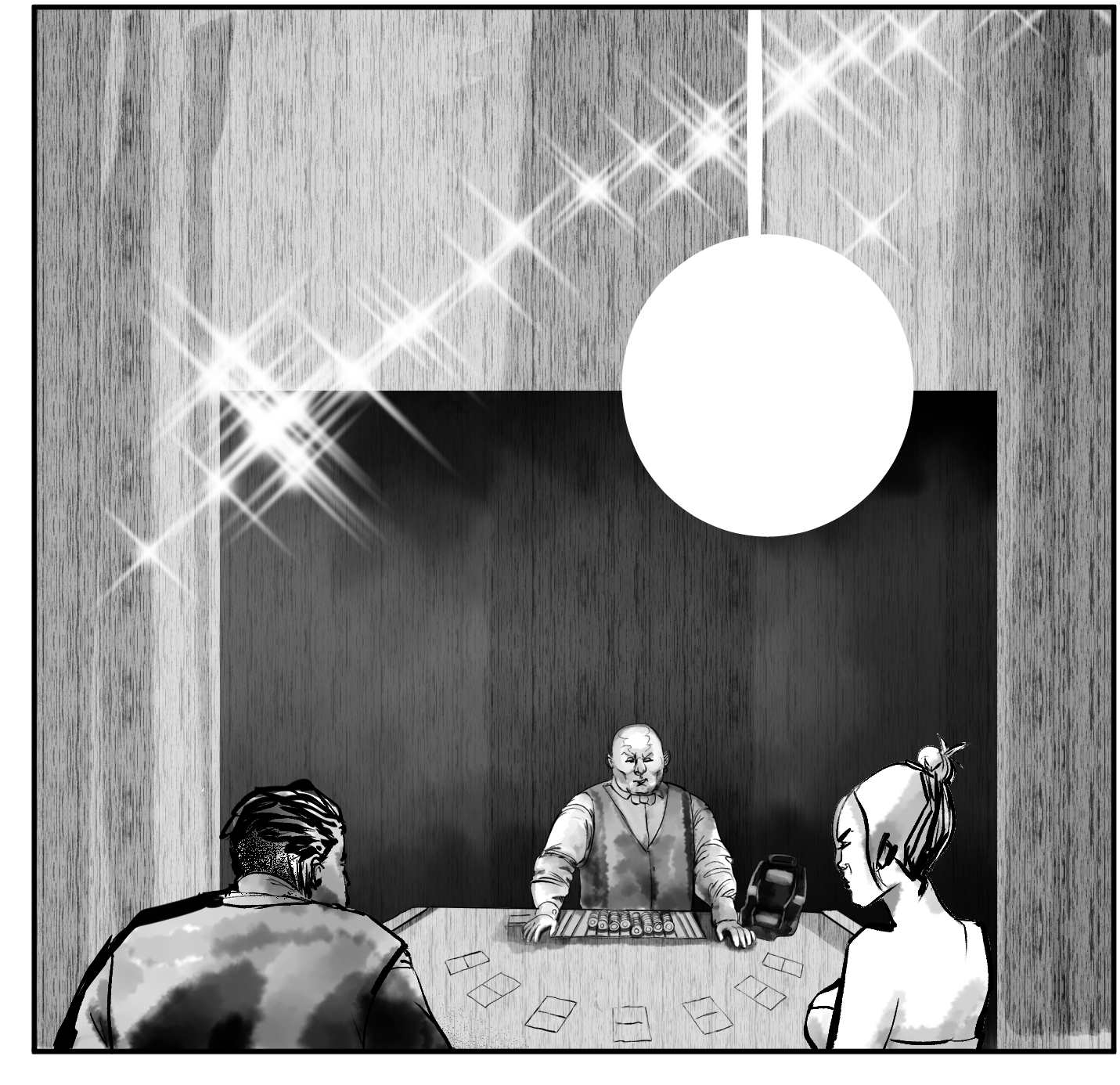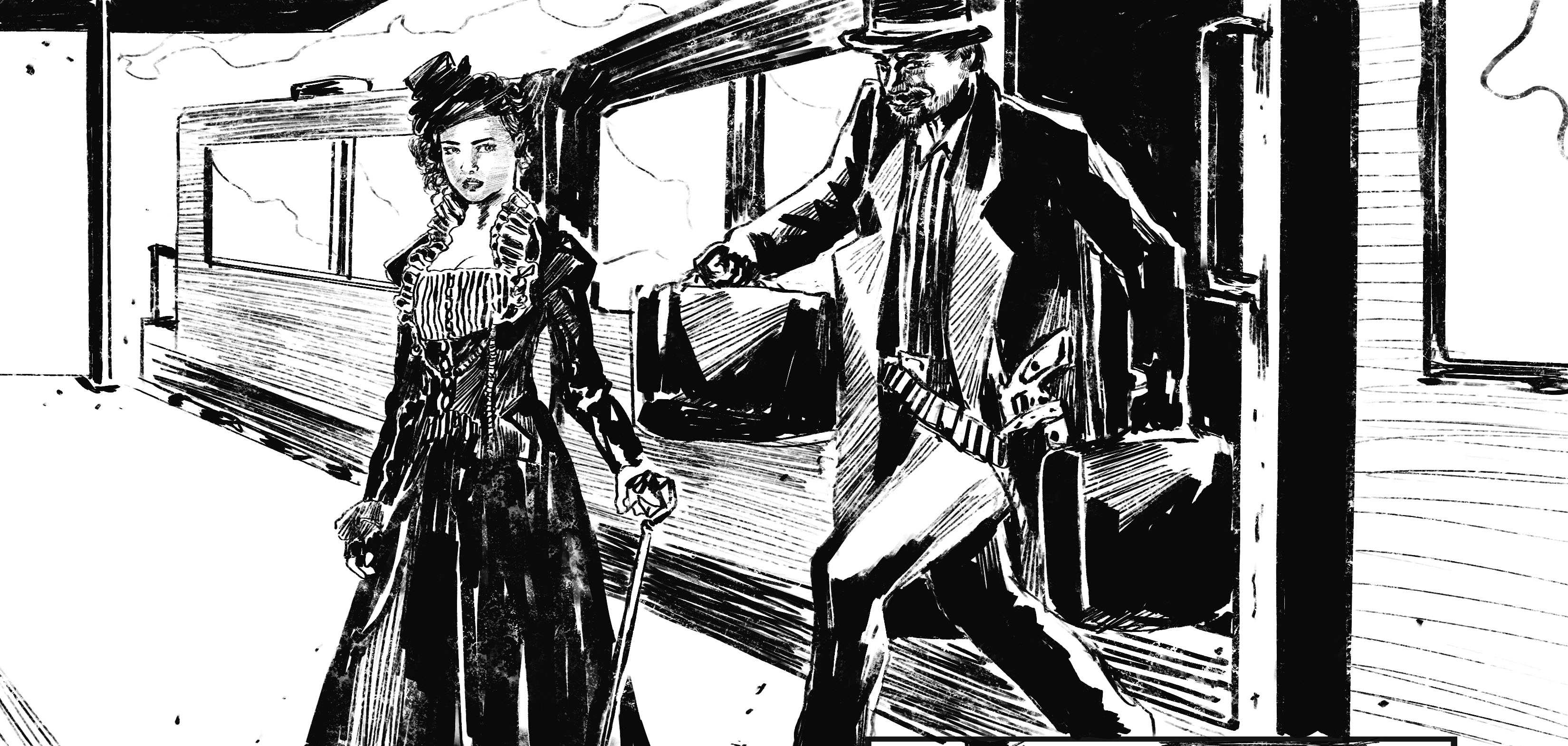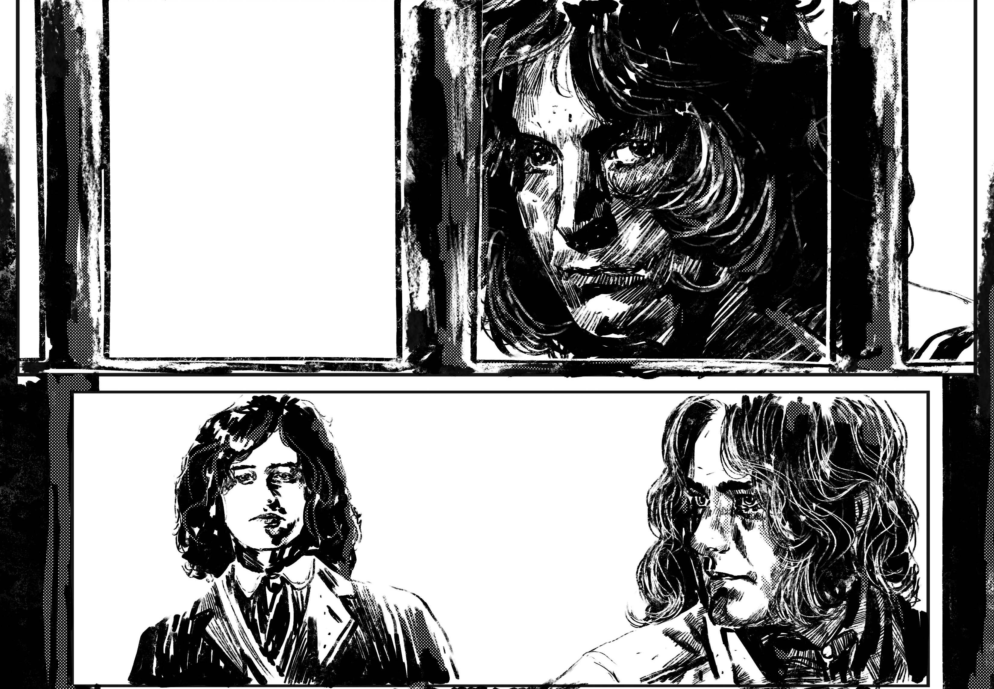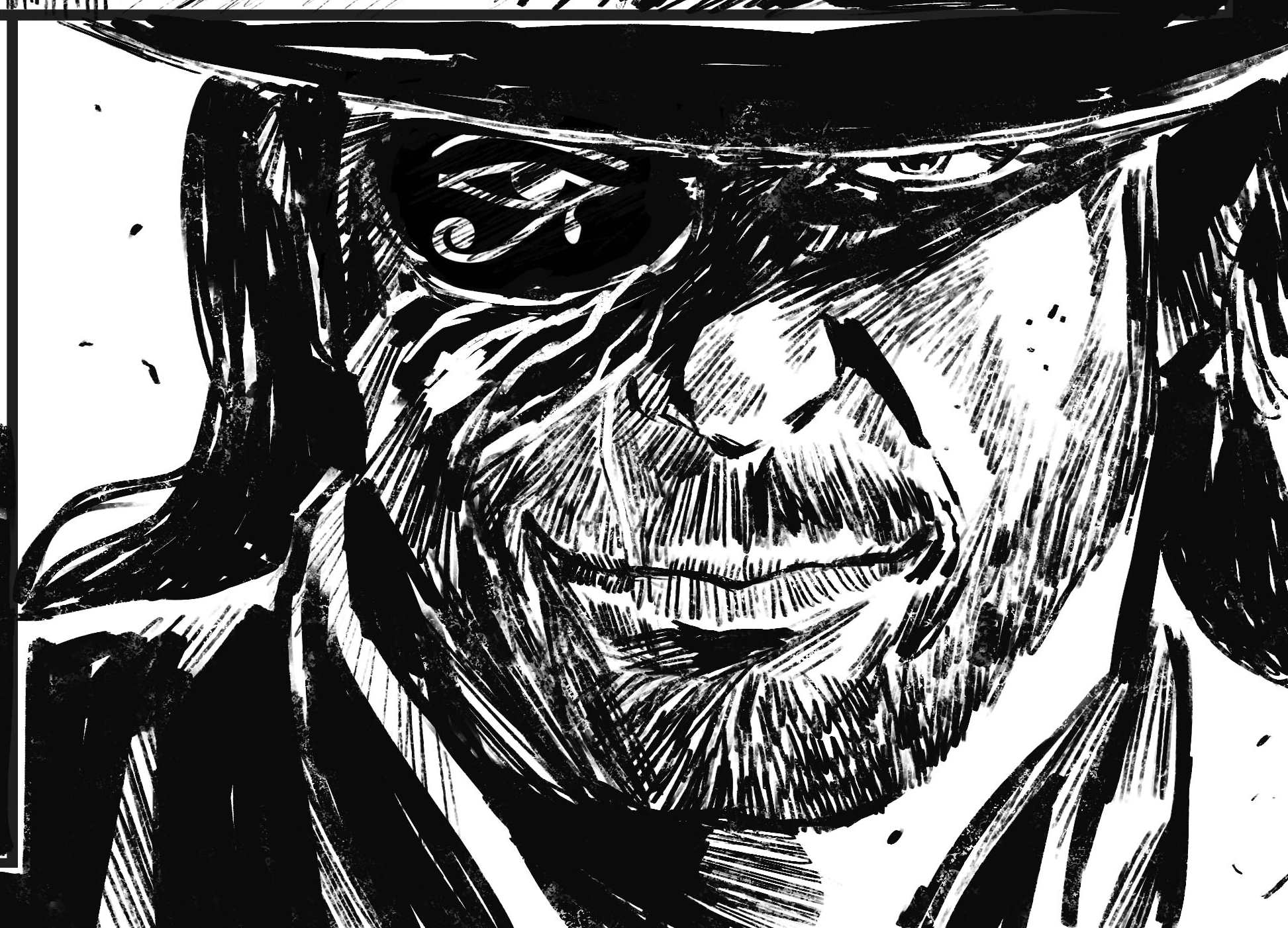 The other story in this month’s issue is Guess My Name, and as you can imagine is homage to, "Sympathy for the Devil" from the Rolling Stones. Here are some rough panels which outline some of the story.