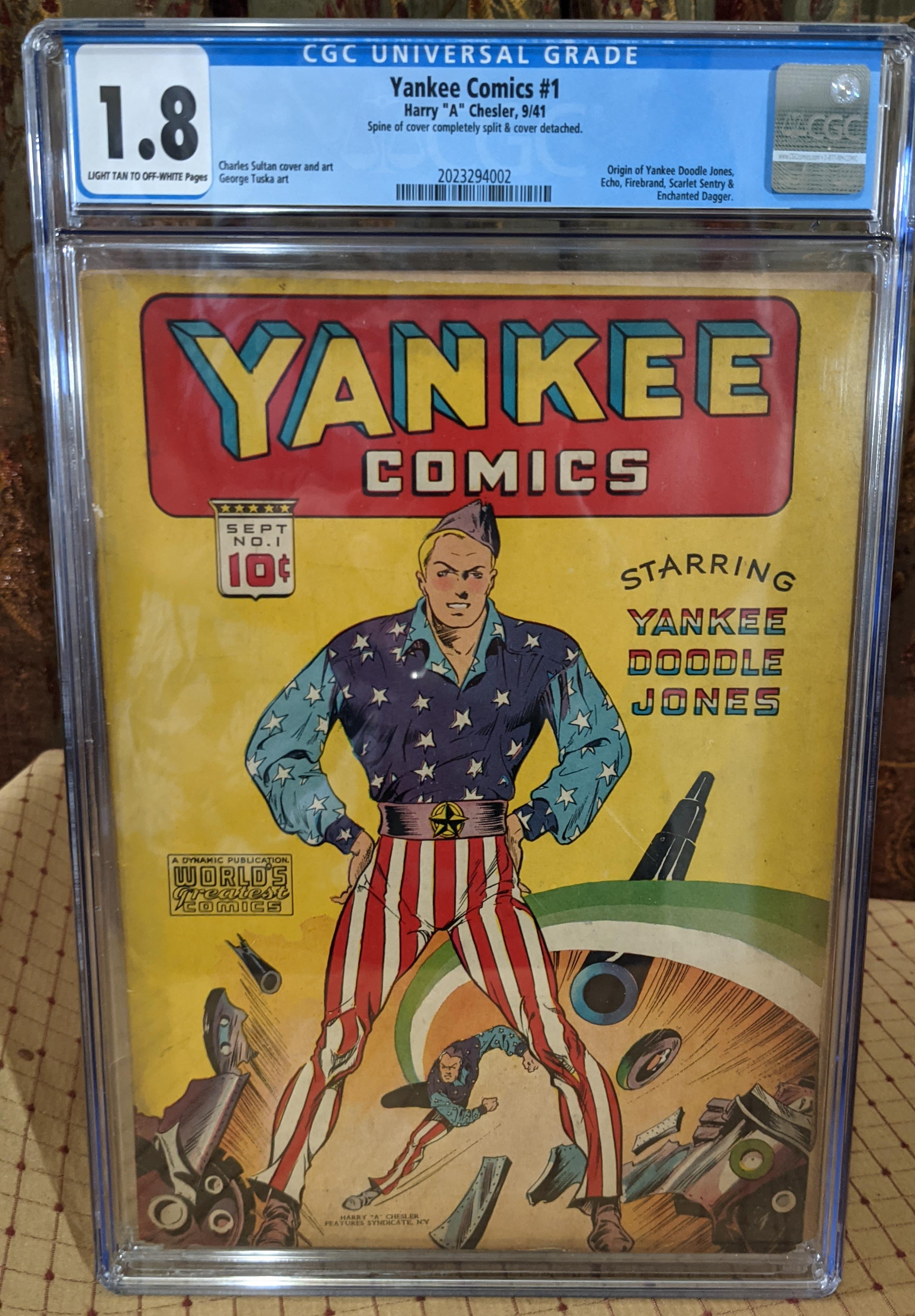 This Yankee Comics #1 is from 1941 and comes from another obscure publisher, Harry A Chesler whose company was primarily focused on supplying comic-book content to publishers. His stable of comic artists included some names Jack Cole, Jack Binder, Otto Binder, Charles Biro, and Mort Meskin. I found an online copy at Digital Comic Museum.