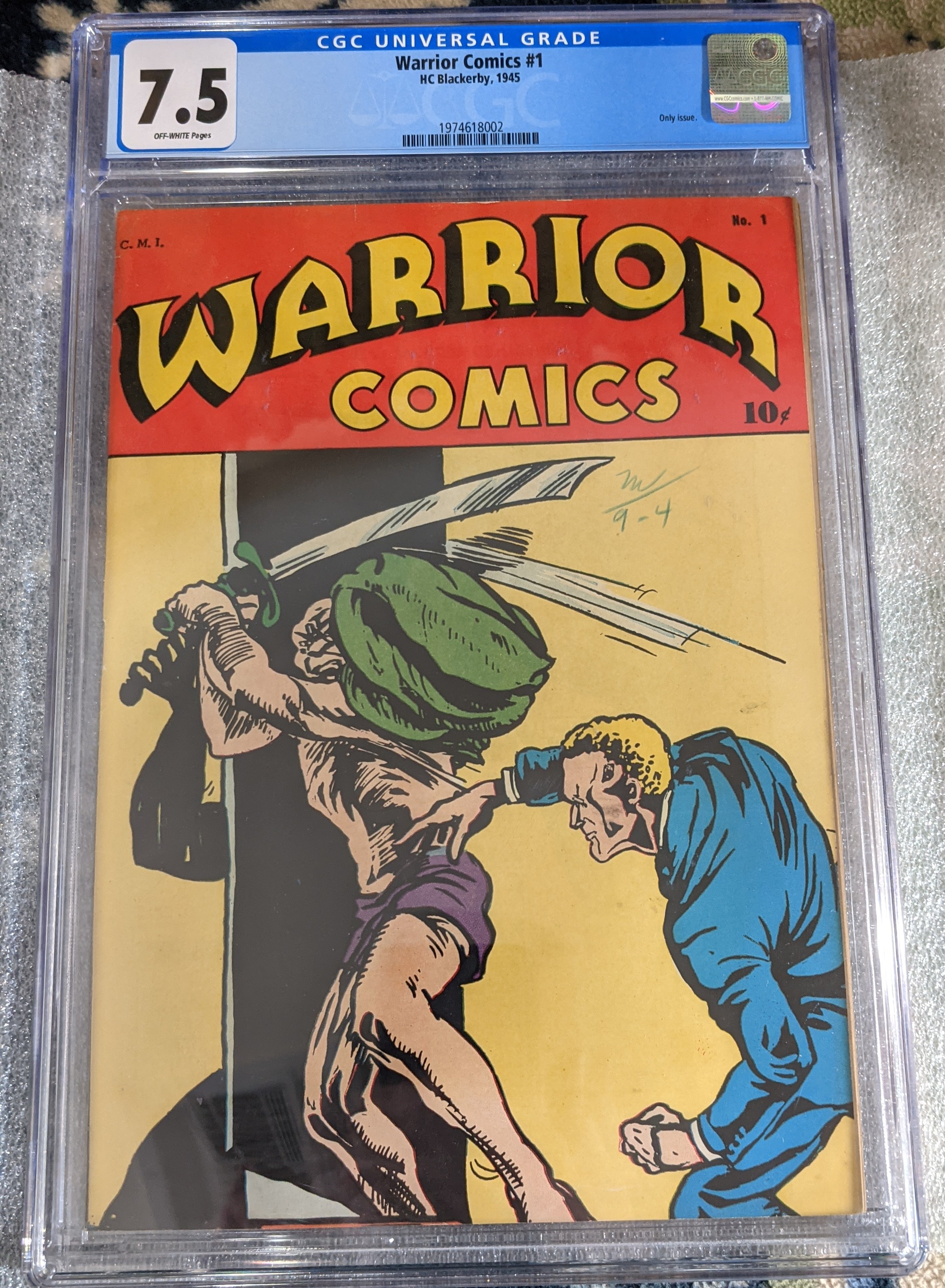 Let’s start this one with an unusual one-shot comic from 1945. Warrior Comics, published by H. C. Blackerby is a very obscure publisher of the 1940s. From what little is known about the company, they put out a few titles in 1945 and disappeared. The comics from unknown publishers I really like, but the pocketbook can seldom afford. The only problem is I can’t find an online copy of this to read.